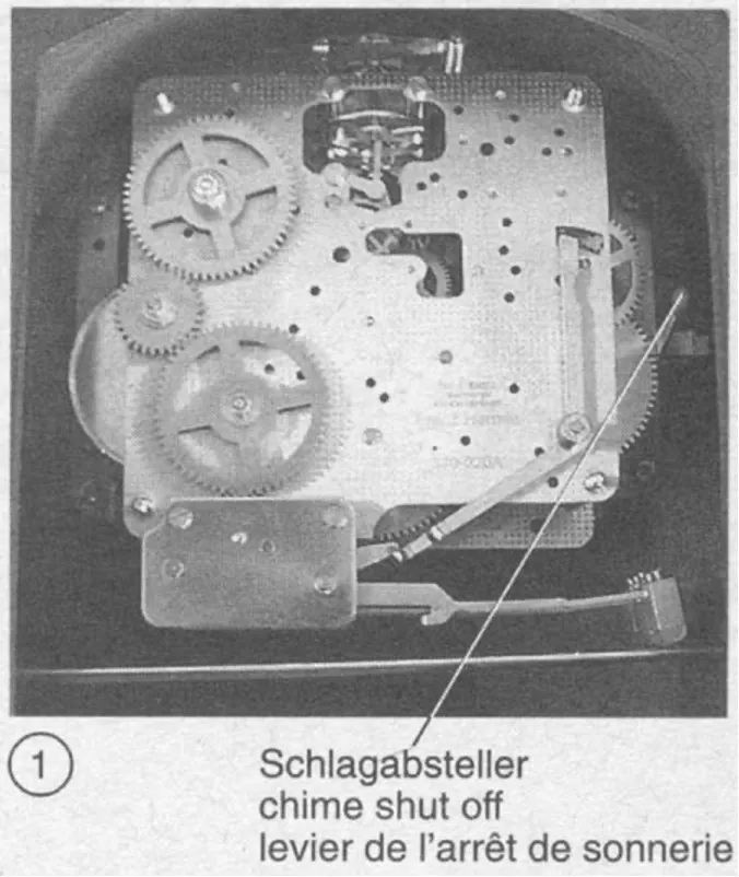 Picture 1 showing location of chime shutoff lever for Westminster chime models